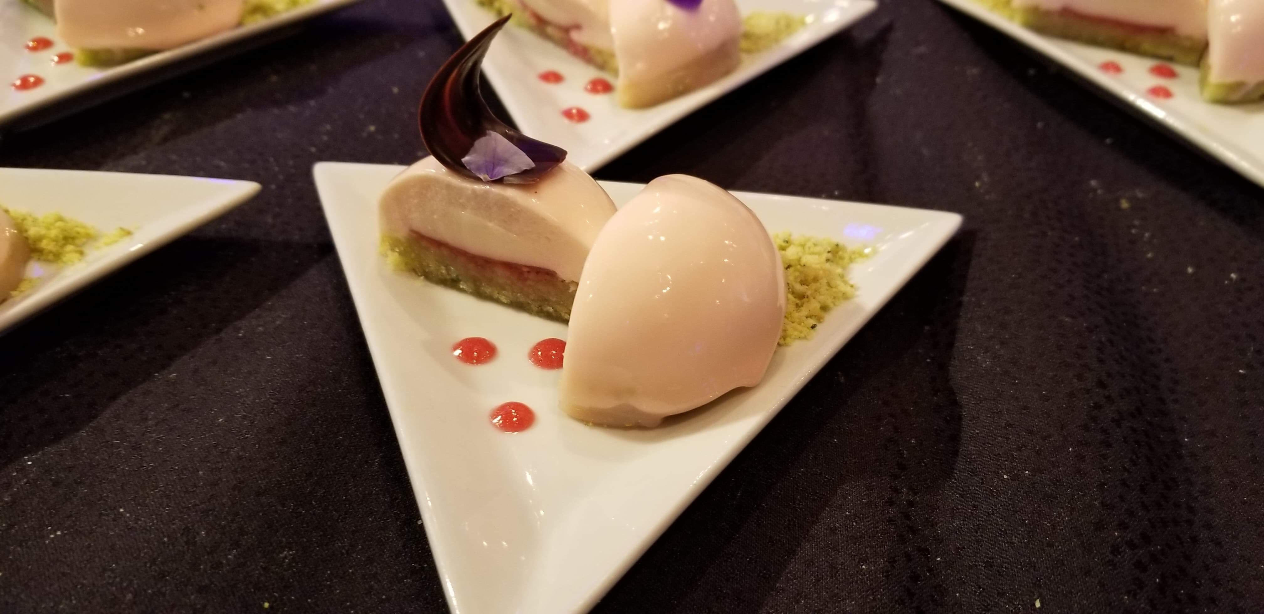 Back to my favorite food topic: Dessert! At Masterpiece Kitchen in the Canada Pavilion there is another treat we are dying to sink our teeth into. It’s the Vanilla, Rose Water and Pistachio Panna Cotta with a Chocolate Shard to accent the dish. It looks almost too good enough to eat…ALMOST.