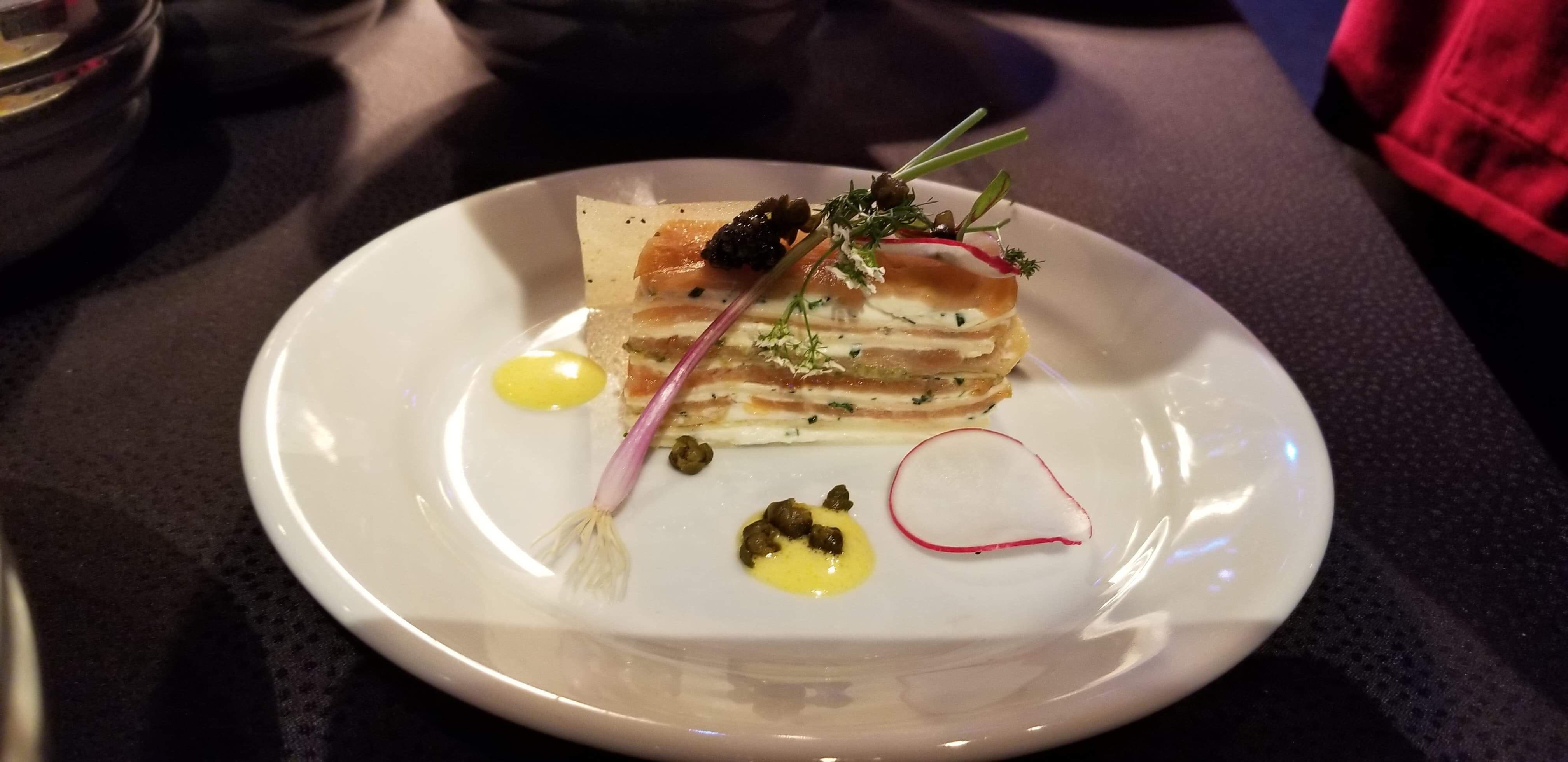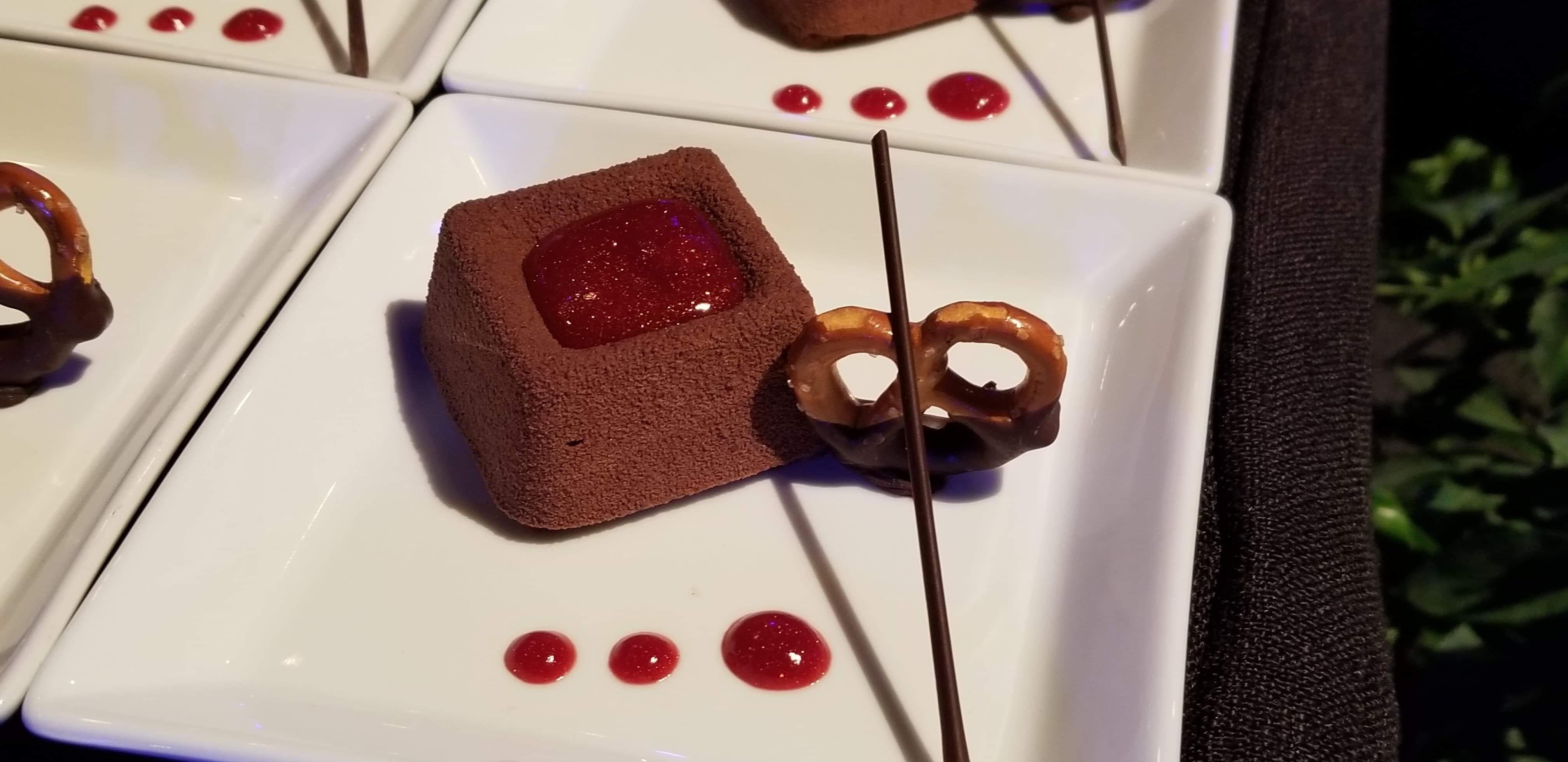Next up we have Smoked Salmon and Cream Gateau with Egg Yolk Cream, Paddlefish Cavier, and Micro Herbs. This item can be found at Painter’s Palate in the Odyssey Festival Showplace. Look a those layers! Swoon…
