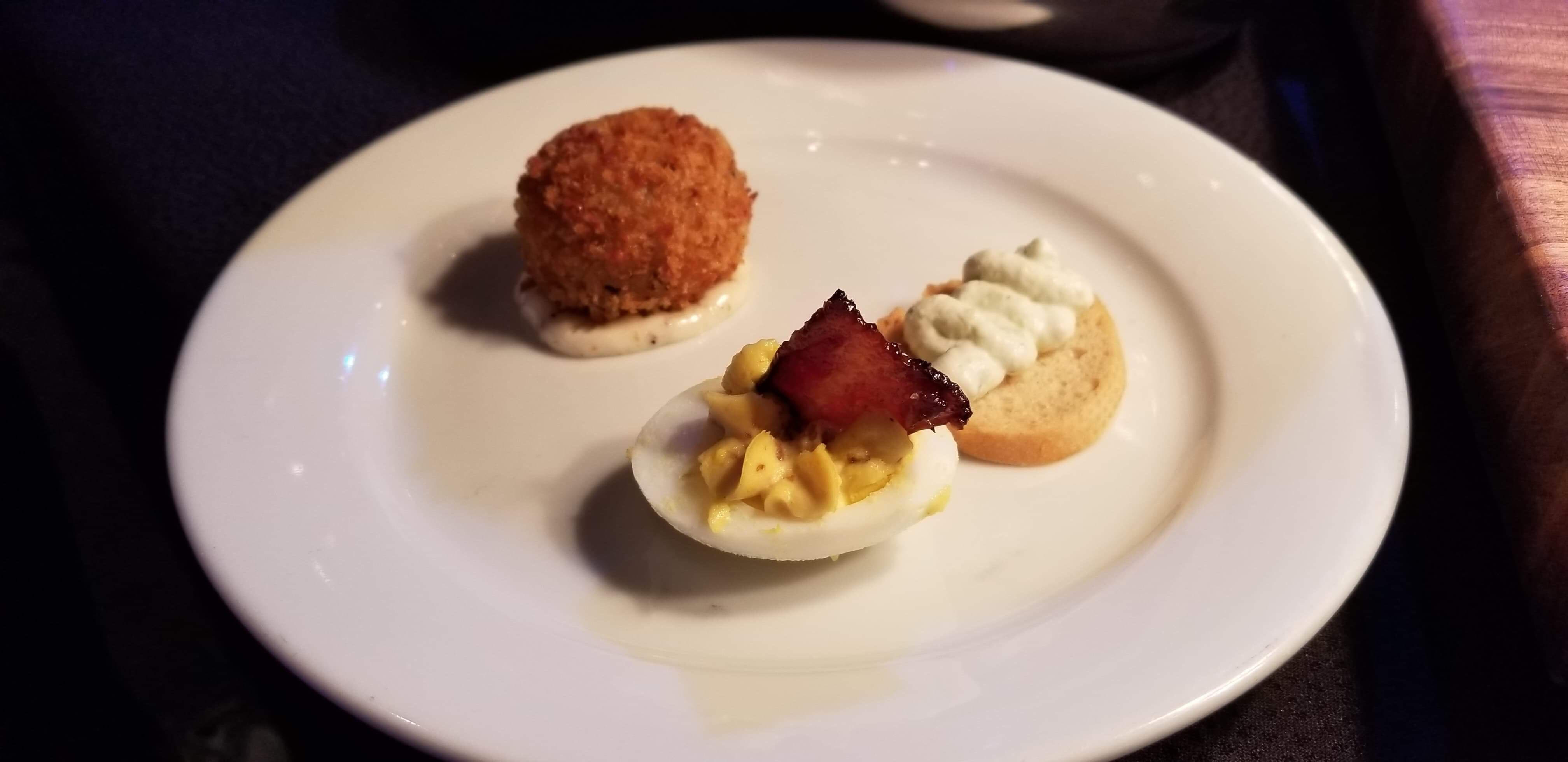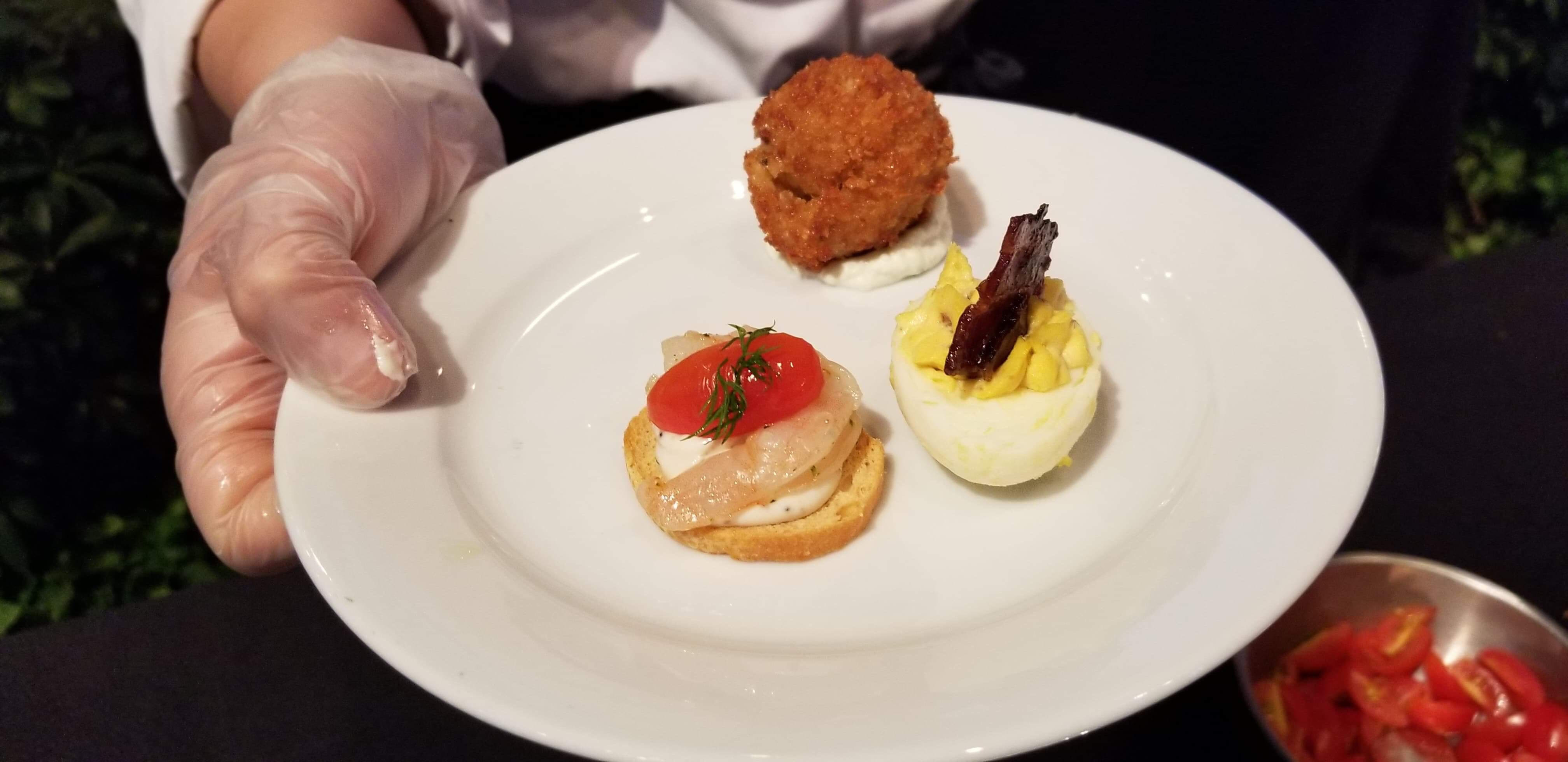 What’s better that one treat? Three! You can try this Gallery Bites: A Trio of d’Oeuvres. It has three separate samples including Traditional Deviled Egg with Candied Bacon, Chilled Shrimp with Cucumber Cream Cheese on a Crostini, and a Crispy Truffled Rissoto Ball with Truffle Aioli.