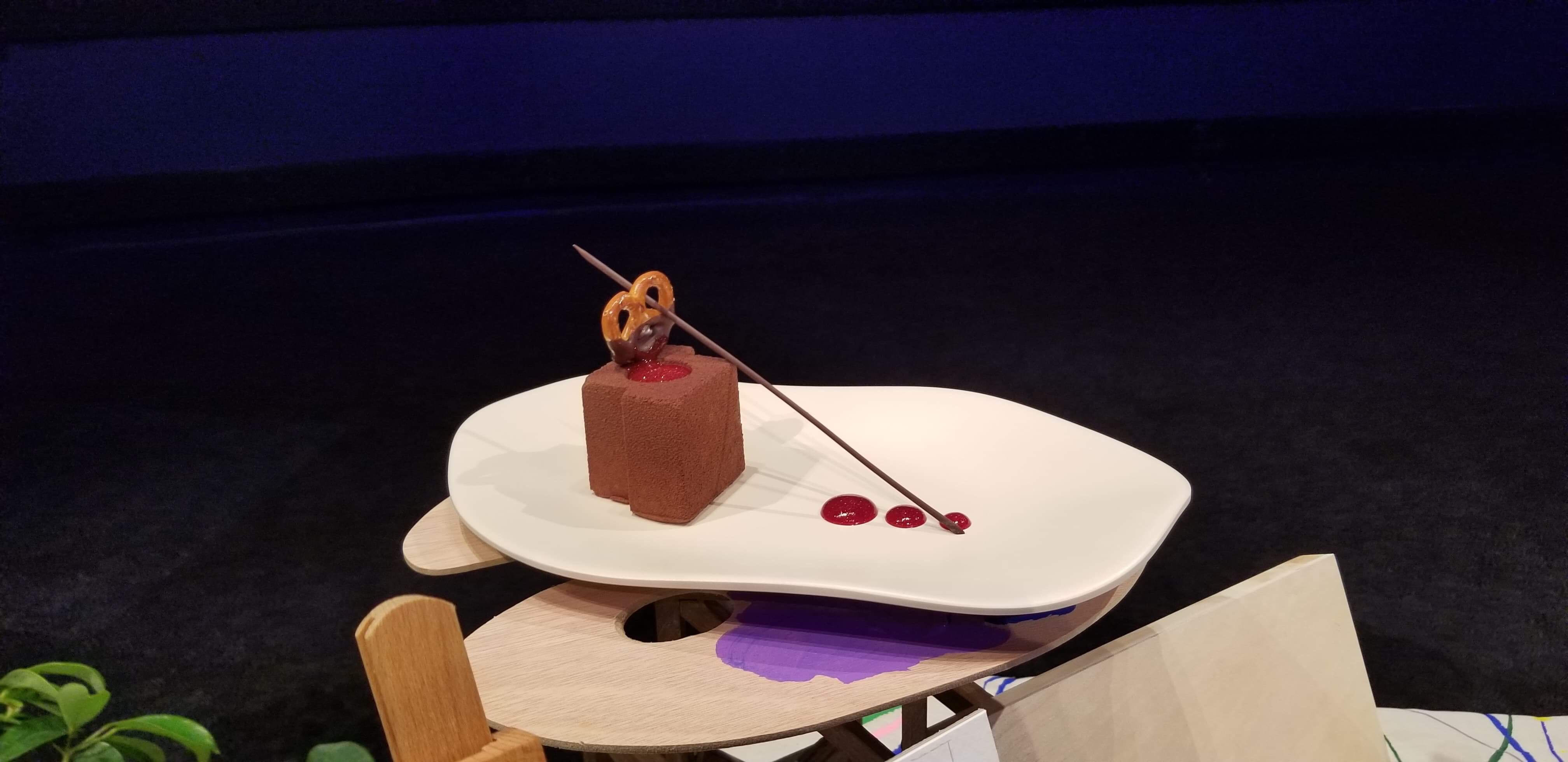 This flavor filled treat is a White Chocolate and Purple Sweet Potato Mousse with Caramel, Chocolate Shard, Blueberry, and Coconut and Maple Meringue decorations. I can hear my taste buds singing! Not to mention the presentation is PERFECT.