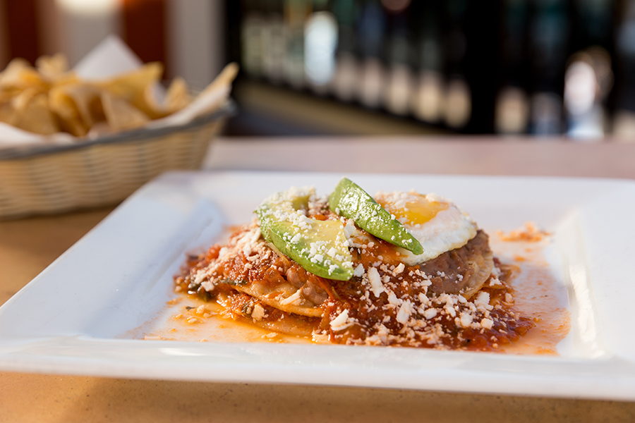 For a more hearty breakfast, visit Tortilla Jo’s. Enjoy their Huevos Rancheros. This flavor packed meal includes two corn tortillas with over easy eggs. This plate is served with refried beans and Mexican red rice. To round out the meal, the Huevos Rancheros are servedd with fresh fruit, mini apple chimichangas, and churros!