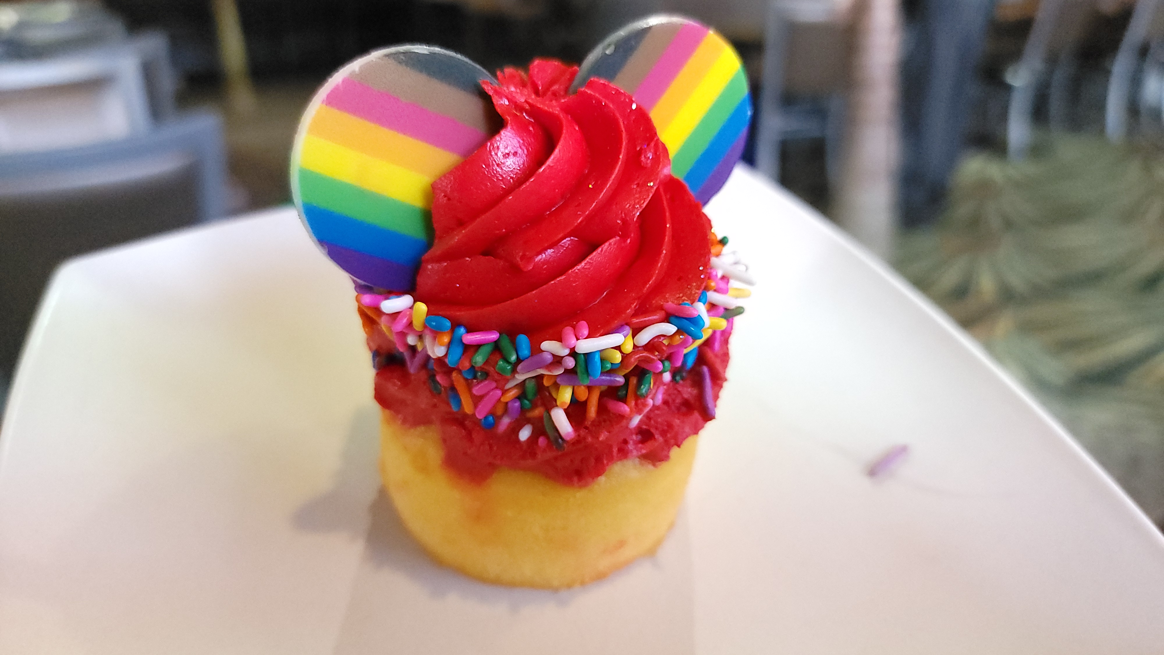 Celebrate Pride Month with the Pride Cupcake at ABC Commissary. Disney Pride is in full force. Pride month started June 1st, 2022, and we have seen Walls, Treats, and a promise to the community that Disney will celebrate pride all year instead of just one month out of the year.