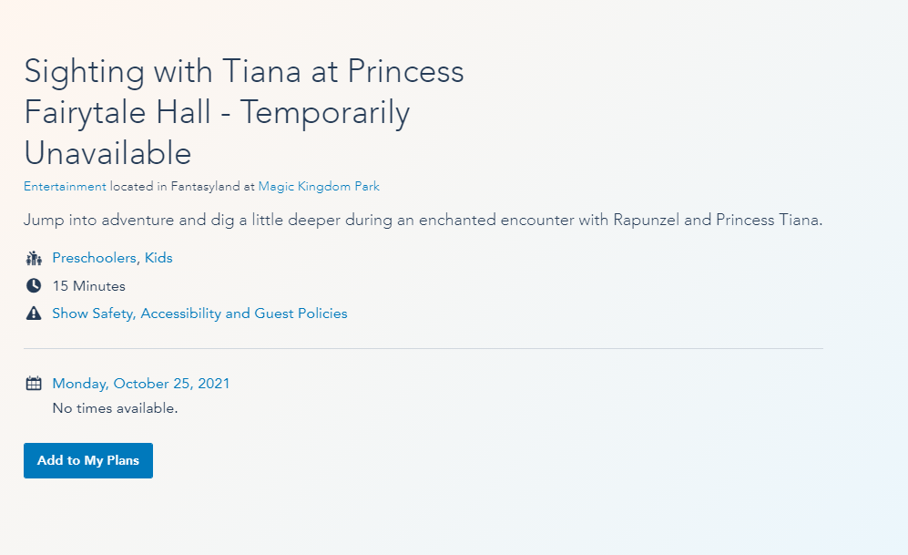 Home Changes to upcoming Character Meets at Walt Disney World 2021-10-25-13_48_55-Meet-Rapunzel-and-a-Princess-Friend-at-Princess-Fairytale-Hall-_-Walt-Disney-Wor