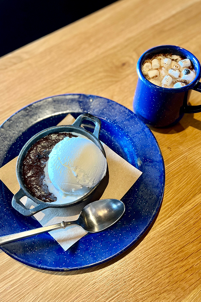 For a tasty flourless chocolate cake, Bigfire has got you covered! The Skillet Baked Chocolate Cake is a rich flourless chocolate cake served with bourbon ice cream.
