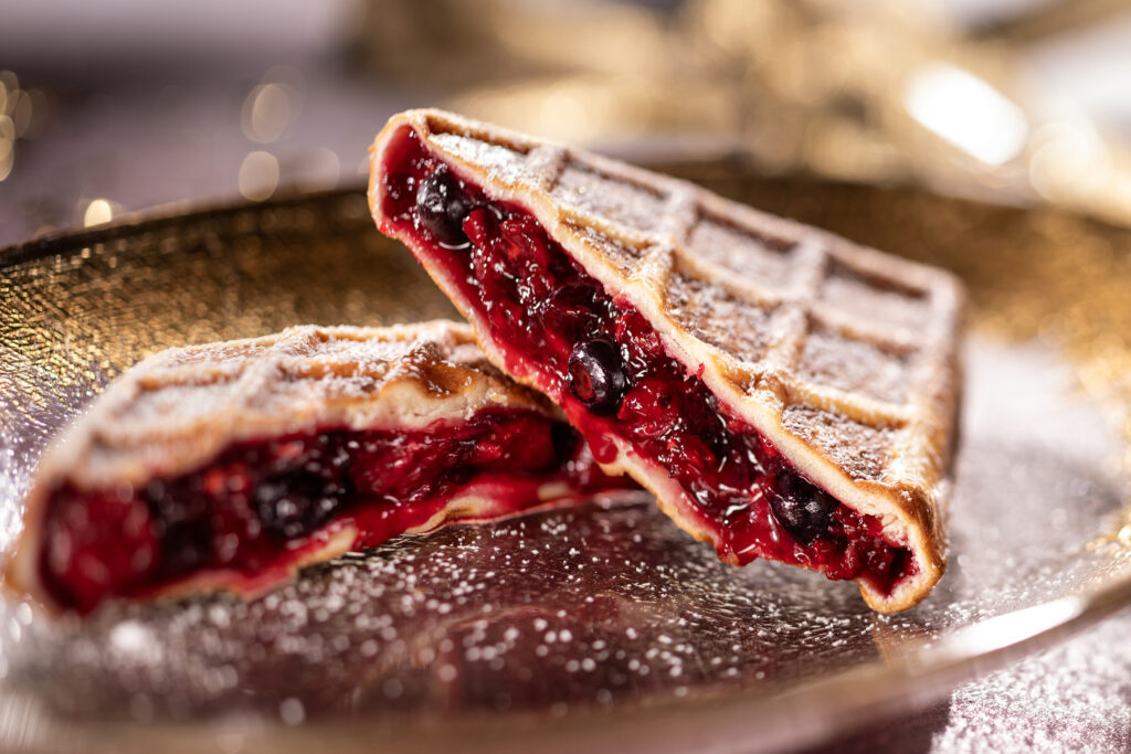 For those who like a fruity burst, this version features a rich berry blend inside a tender waffle shell, served warm with a hint of tartness and sweet nostalgia.