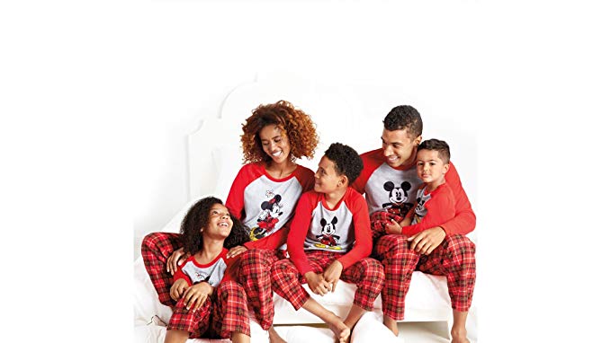 These cute matching pajamas offer Mickey and Minnie styles, and come with black and red plaid pants. The tops are grey raglans with red sleeves, that lend to a casual look you can wear all year round, instead of just at the holidays! These are great for creating matching pajamas for families of any size too!