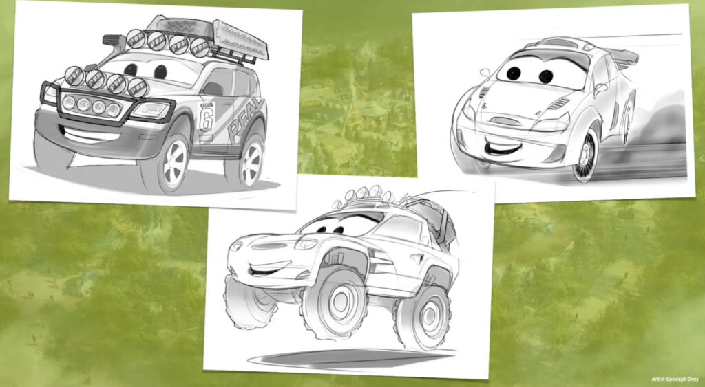 Adding to the excitement, Docter shared concept sketches of new race car personalities that will feature in the attraction. “Each vehicle in the ride will have its own name and number, just like a real race,” Docter teased, promising a unique and immersive Cars experience for guests.