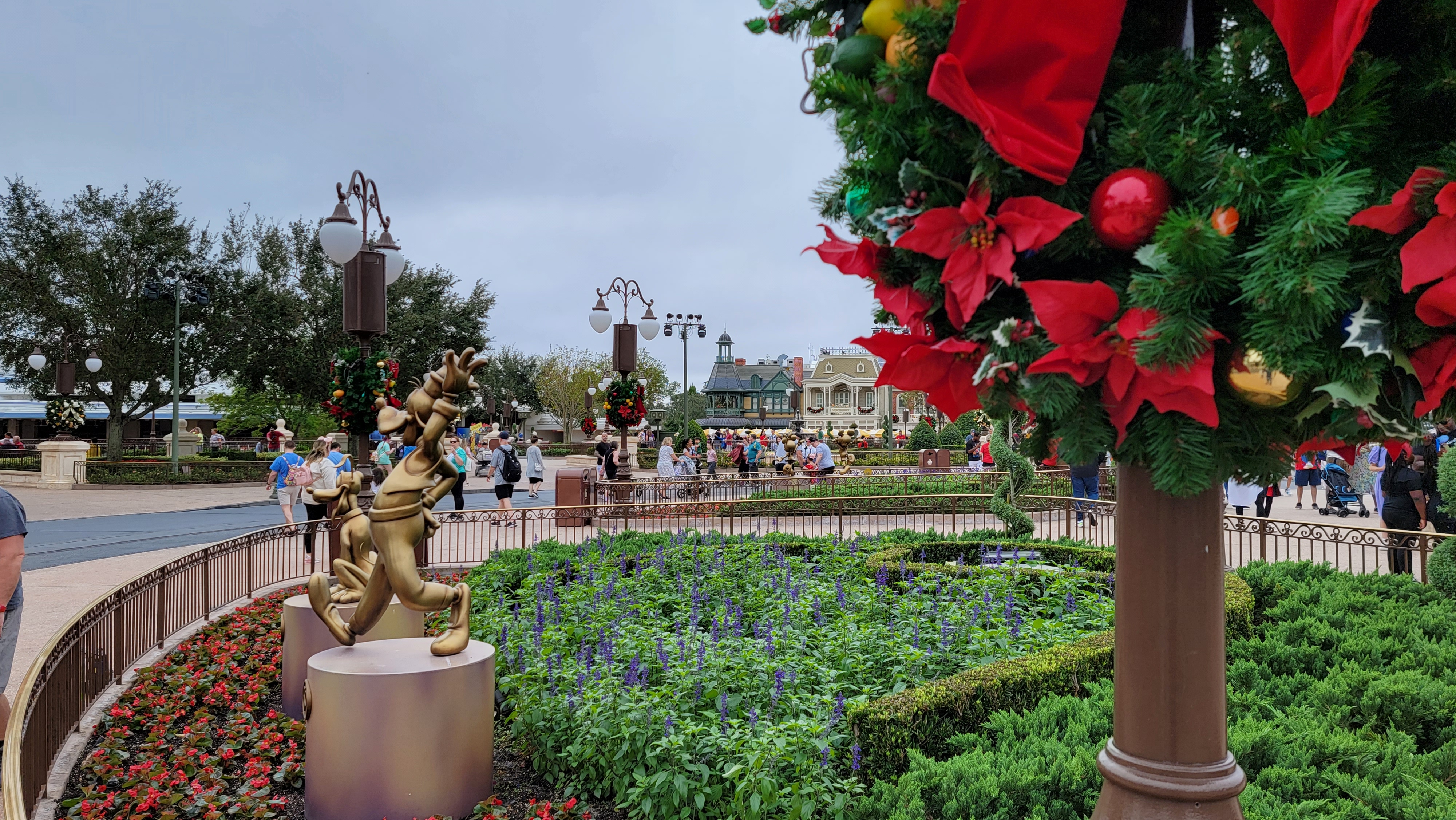 While interacting with the Gold Statues, sometimes you get a surprise. Recently when we walked by Goofy and Pluto Statue, sitting in front of Cinderella Castle, Goofy wished us a “Happy Holidays, Gwarsh” (Wonder how many people made the noise of Gwarsh in your head and it sounded like goofy’s voice?) Not only was Goofy giving holiday greetings, but all the Fab 50 Statues in the Magic Kingdom are.