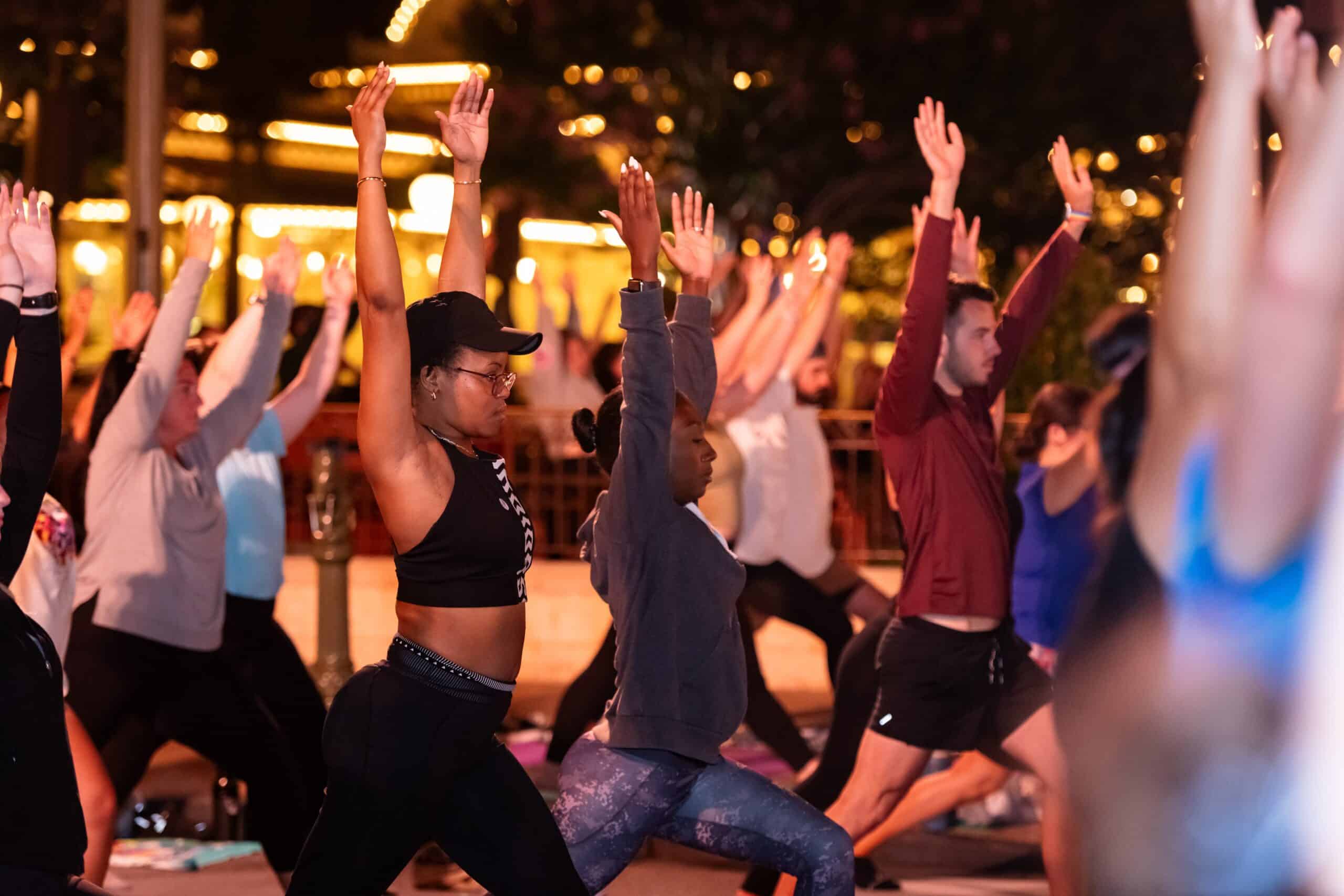 Disney-World-Cast-Members-Celebrate-International-Yoga-Day-in-front-of-Cinderella-Castle