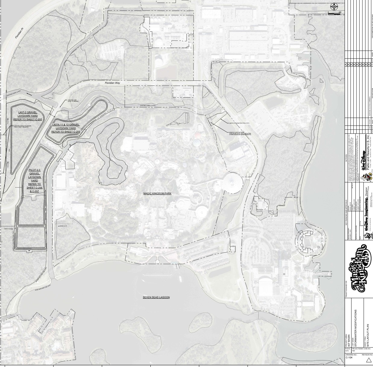 The recently filed permits focus on water management and construction staging, essential for preparing the land. Three construction laydown yards will be established, with one visible from within the park along the northwestern banks of the Rivers of America.