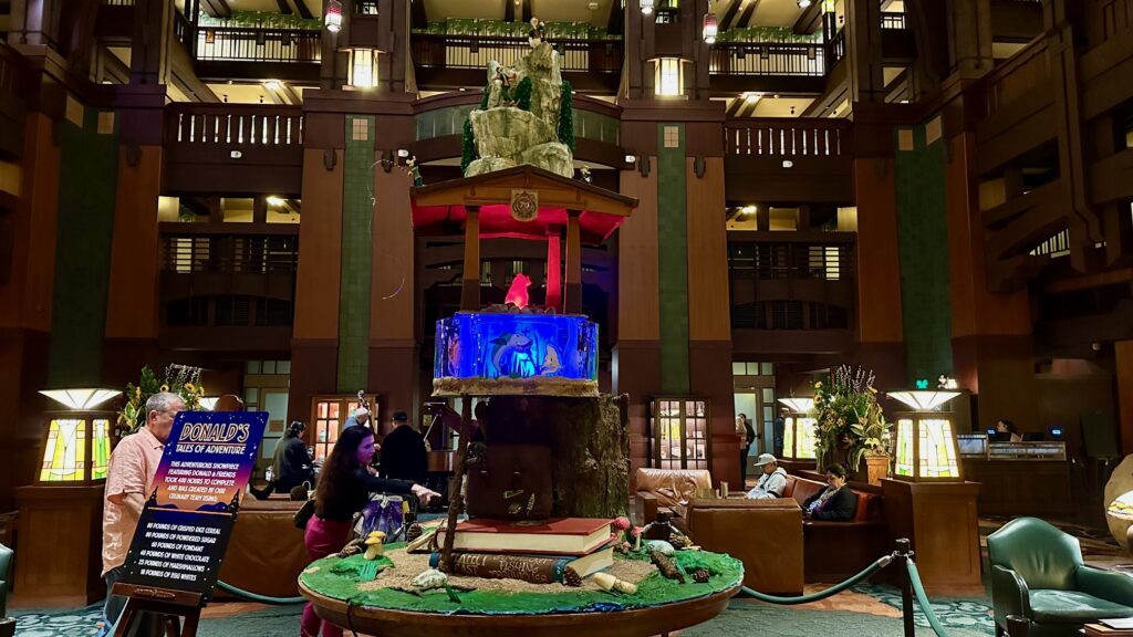 This “Adventure Structure” has been thoughtfully designed to complement the Grand Californian’s established aesthetic and warm ambiance. It also acts as a charming nod to the newly introduced Donald’s Tales of Adventure Dinner Buffet at Storytellers Cafe, strengthening the thematic connection throughout the hotel.