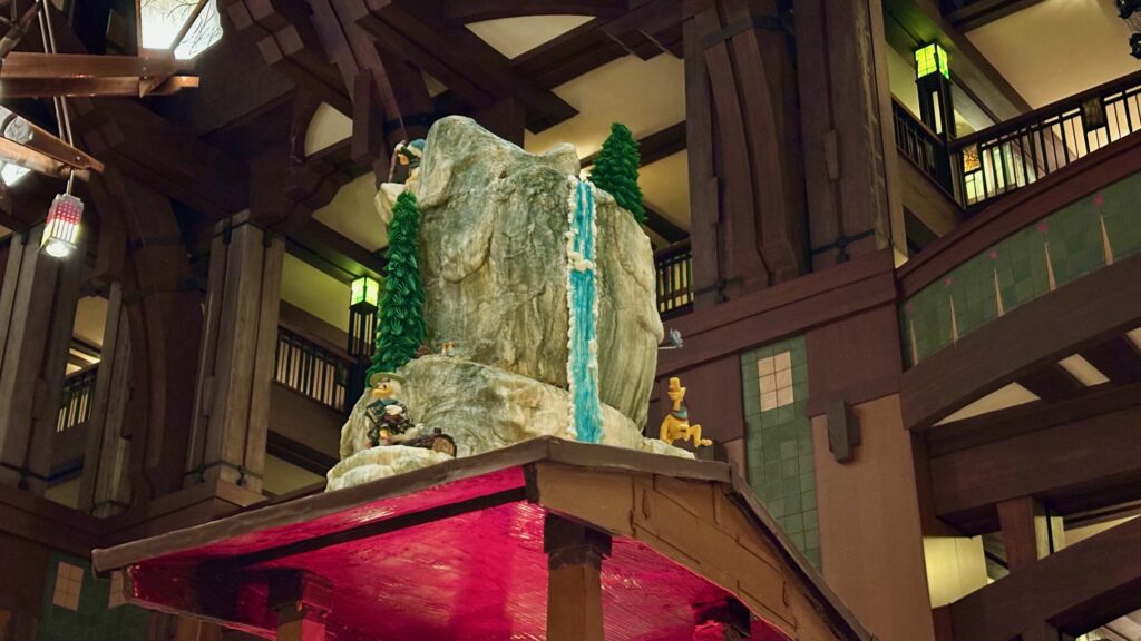 To further commemorate the exciting new Donald’s Tales of Adventure Buffet at Storytellers Cafe, Disney’s Grand Californian Hotel has added a delightful touch of artistry to its lobby. Guests are now greeted by a stunning chocolate sculpture, a sweet testament to the enhanced dining experience and the ongoing celebration within the hotel.