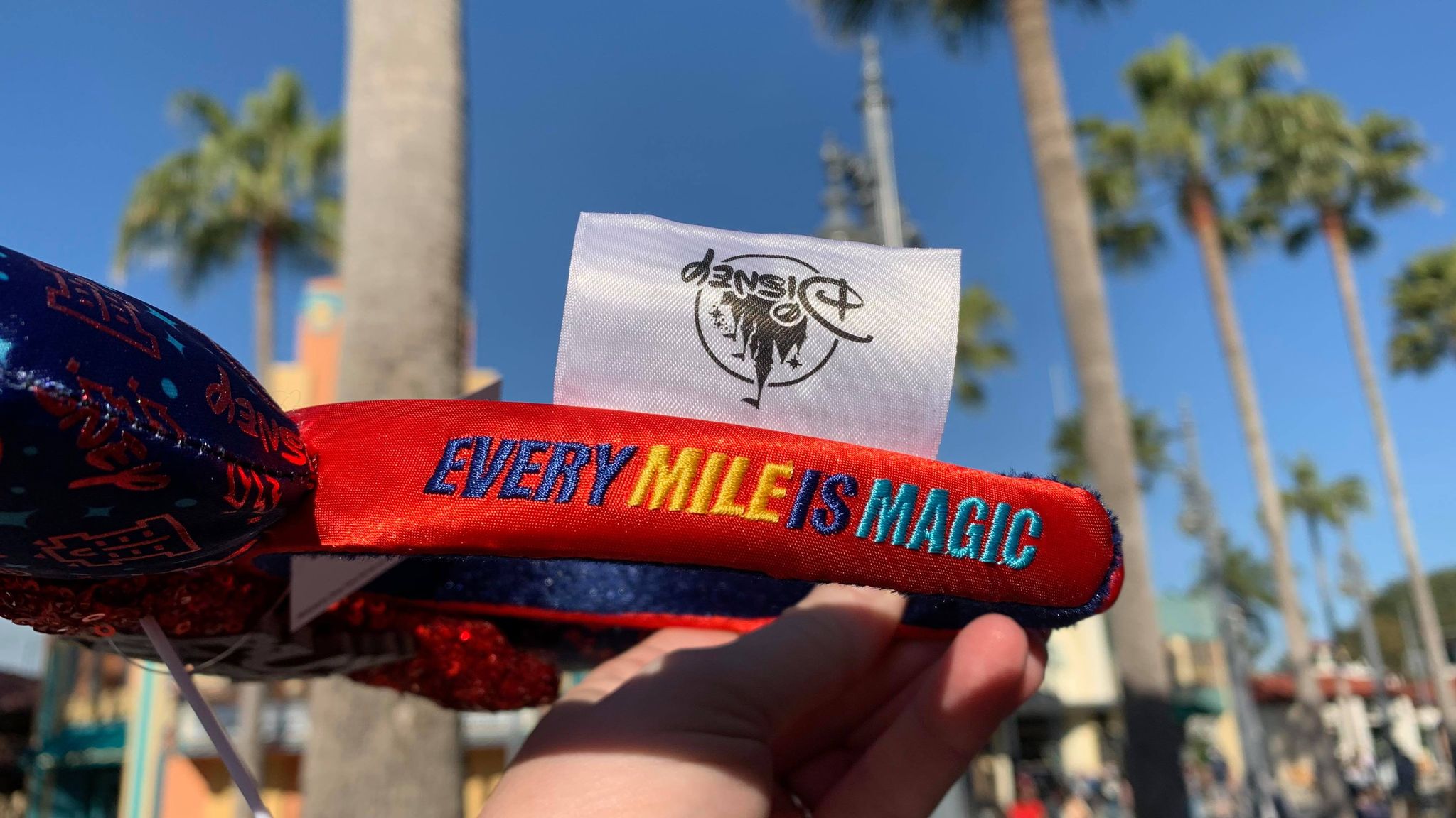 The side of the headband features embroidery that reads “Every Mile is Magic”.