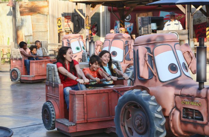 This attraction seems to be a re-theming of Mater’s Junkyard Jamboree located in Cars Land at Disney California Adventure. If everything holds true, this means that the height requirement will be 32″ or taller to ride. We can also expect that the “alien saucers” will travel in overlapping figure eight patterns along interlocking turntables. The vehicles are transferred from one revolving turntable to another, creating near miss moments. Another fun element is that Mater’s trailer swings freely from side to side as you go through the turntables. So hopefully we will see this again with the saucers.