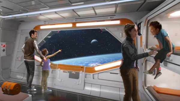The immersive experience offered at this hotel will stand out among all of our resorts around the globe. As you can see, families visiting this resort will board a starship alive with characters and stories that unfold all around them during their voyage through the galaxy – and every window has a view of space!