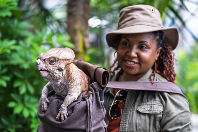 Get ready for an exciting new character encounter! Guests will have the special opportunity to meet Dolores, the adorable Aquilops from the new film. She’ll be accompanied by her handler, an animal specialist ready to share fascinating facts and stats about this tiny Ceratopsian herbivore. Beyond Dolores, you can also meet other beloved dinosaurs like Blue the Velociraptor, Juliet the Triceratops, and Baby Tango. Plus, keep an eye out for four new Dilophosaurus that have joined the ride experience!