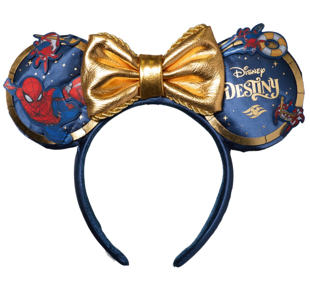 Of course, it wouldn’t be Disney without some amazing ear headbands! Choose from the dazzling Disney Destiny Ear Headband with Spider-Man on the ears and a gold bow, the elegant Disney Destiny Logo Ear Headband with a debossed logo and gold metallic bow, or the vibrant Disney Destiny Super Character Minnie Ear Headband with embroidery and a gemstone.