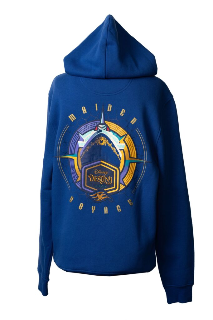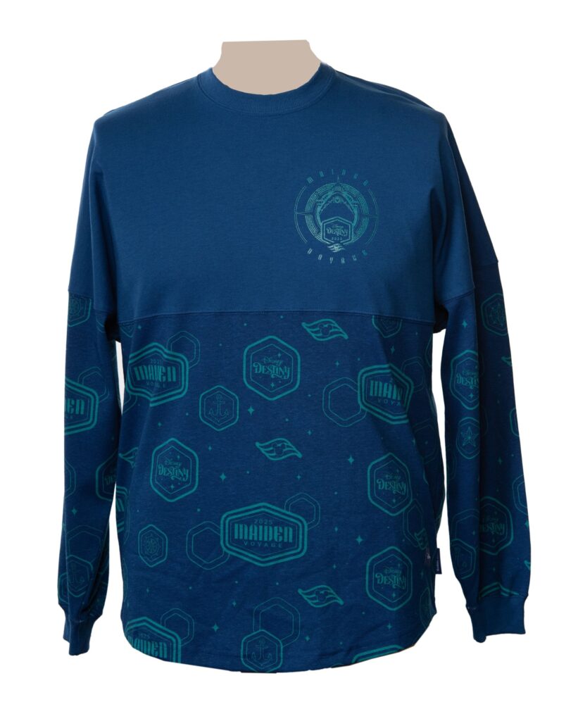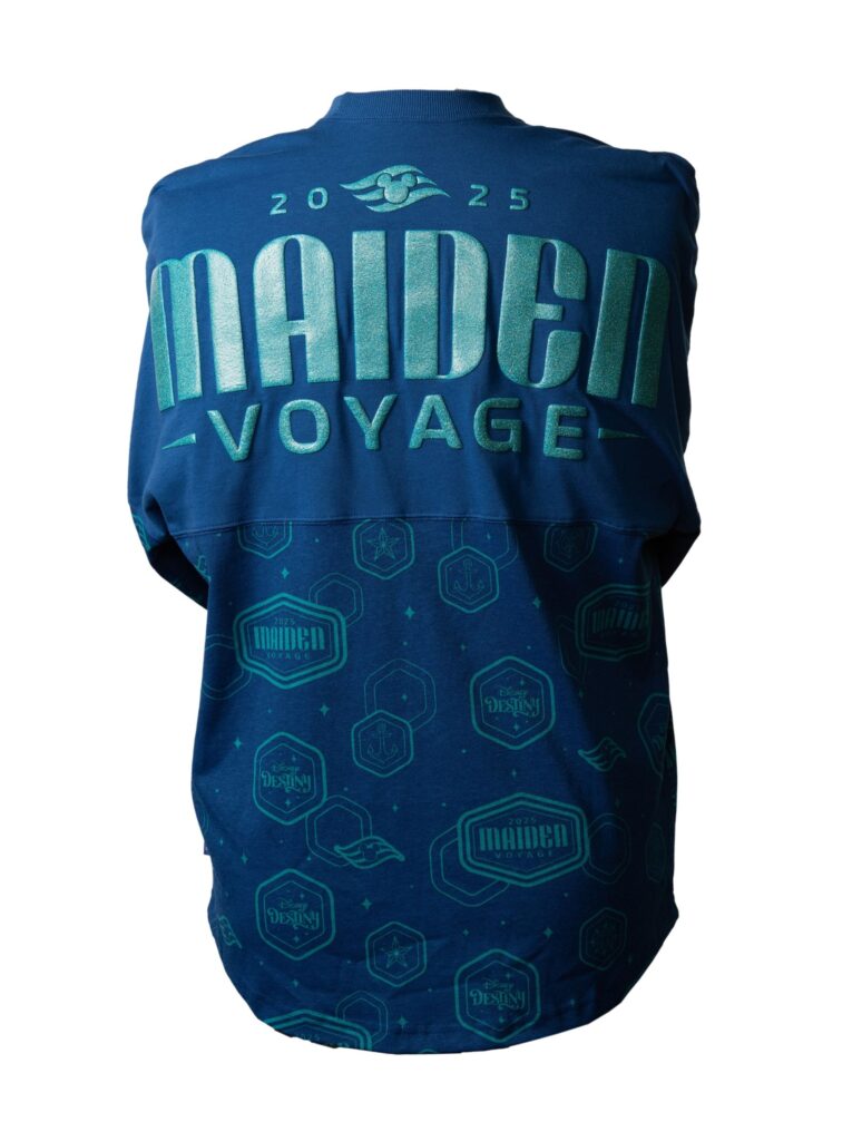 And for that ultimate comfy-cool vibe, the Disney Destiny Maiden Voyage Spirit Jersey is a must-have, with a teal inaugural logo and “Maiden Voyage” puff-printed on the back. Plus, it’s got a cool teal all-over print on the sleeves and bottom. Don’t forget the classic Disney Destiny Maiden Voyage – Adult T-Shirt, showing off Captain Mickey, the ship, and bold “Maiden Voyage 2025” lettering with some snazzy gold metallic accents.