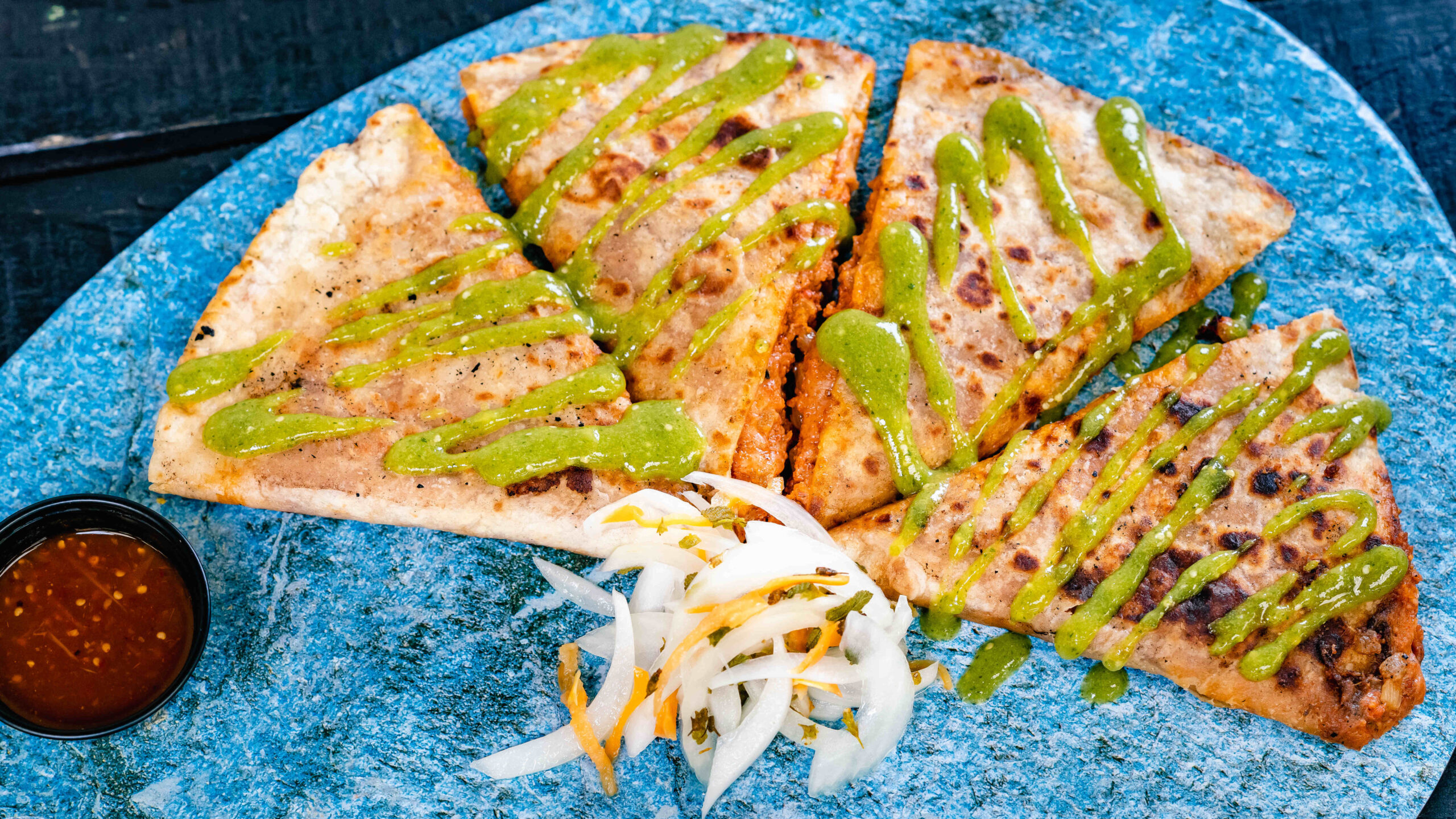 Home Food & Drink Guide to Plaza de la Familia at Disney California Adventure DLR_DCA_ParadiseGardenGrill_ChorizoQuesadilla_06212022_DSC00635DN