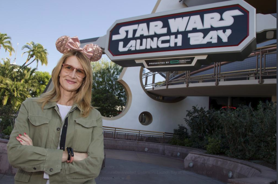 We here at Chip and Co. have another Disney celebrity sighting for you. The esteemed actress Laura Dern who is most recently known for her role as the self-sacrificing Admiral Holdo from Star Wars: The Last Jedi, was aptly spotted outside Star Wars Launch Bay on a recent visit to Disneyland theme park in California over the weekend.