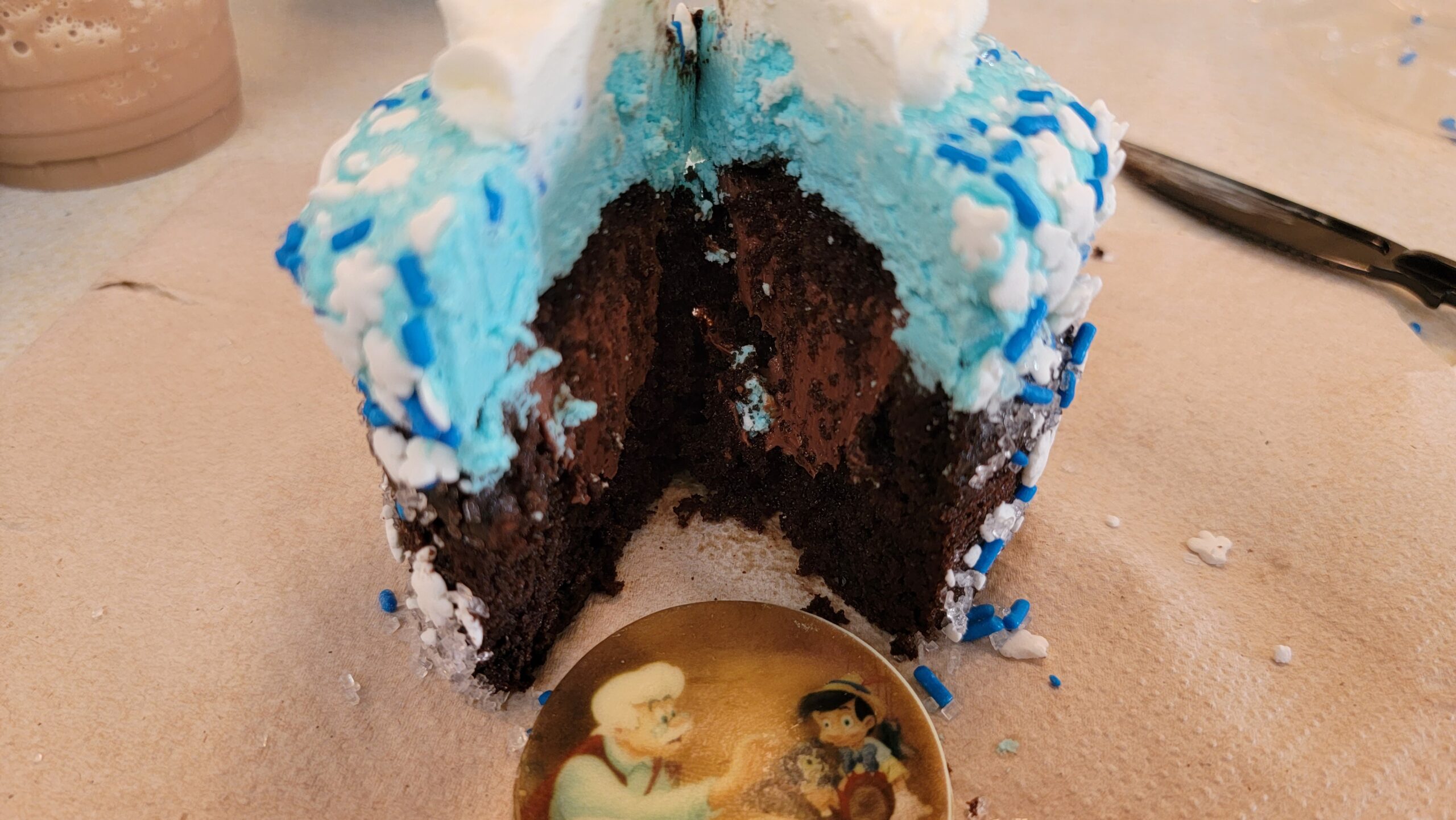 Geppetto and Pinocchio Chocolate Medallion Seasonal Cupcake