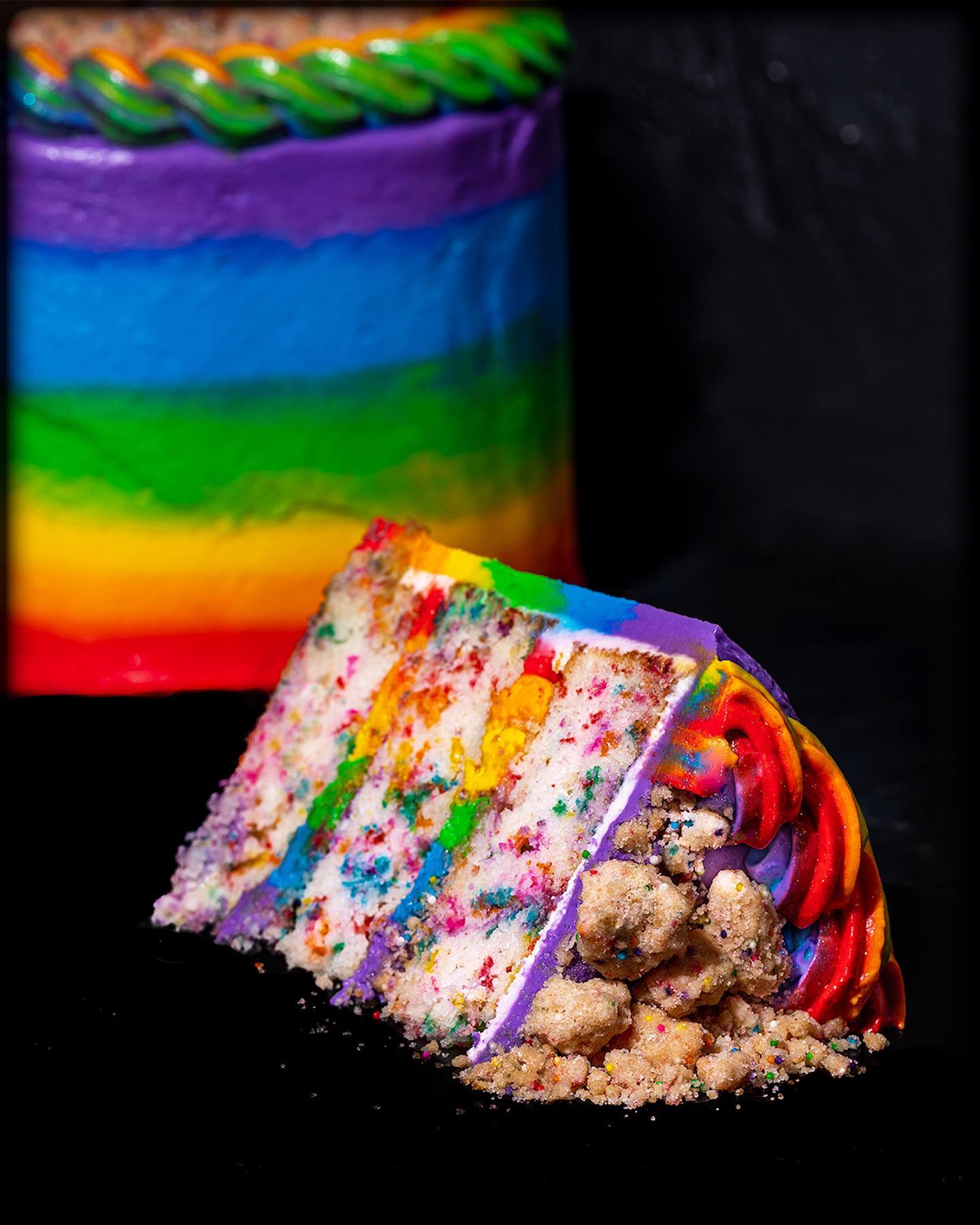 Special Cake Announcement!! Pride Month is extra important to Gideon’s and Central Florida, so we are very excited to celebrate with a brand new Rainbow Crunch Cake! This fluffy 3-Layer Vanilla Confetti Cake is covered with our extraordinary multi-colored Marshmallow Buttercream and laced with our mega crunchy Rainbow Crumbs! Each Gideon’s cake is lovingly scratch-made by hand and is available by the slice every day of June at Gideon’s in Disney Springs and every weekend for Gideon’s at the East End Market.