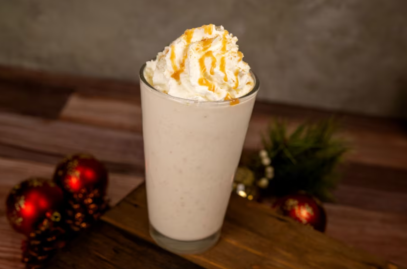 - Holiday Cookie Shake: Hand-spun vanilla soft-serve, blended with sugar cookies and caramel drizzle topped with marshmallow whipped cream, mini chocolate candy pieces, holiday sprinkles, and a cookie