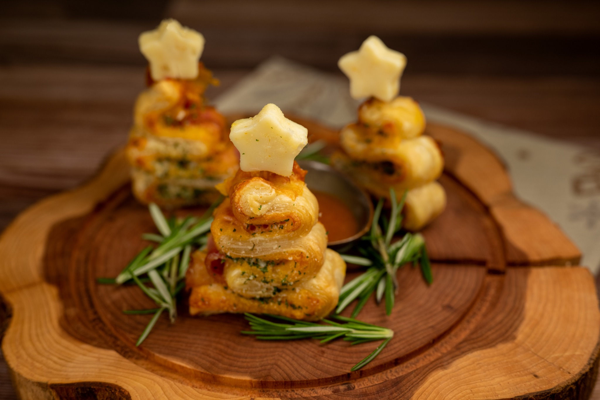 - O’ Ham N’ Cheese Trees: Puff pastry, Pitt ham, cheddar cheese, garlic herb butter, and sugar plum jam (New) (Available Nov. 9 through Dec. 30)