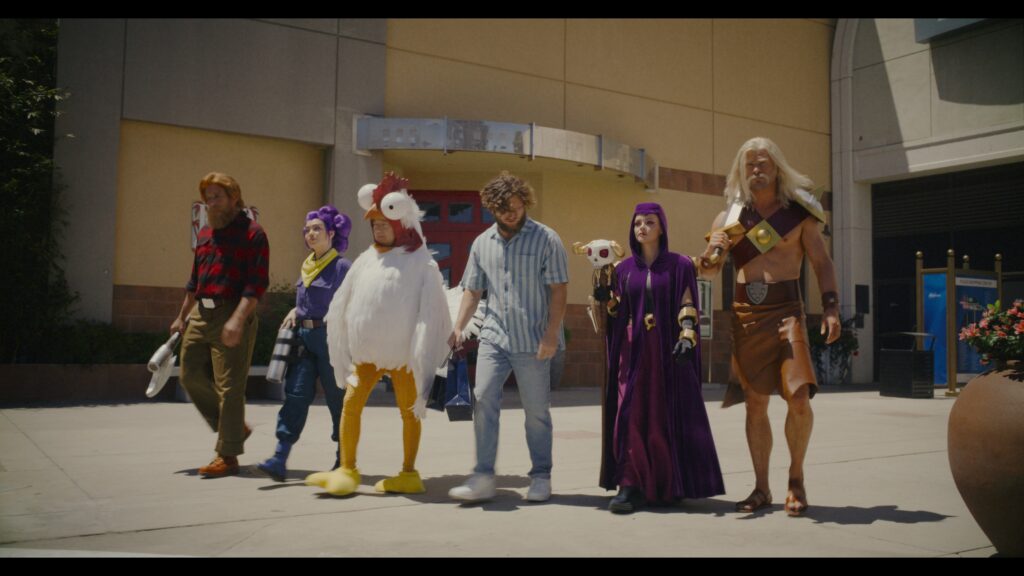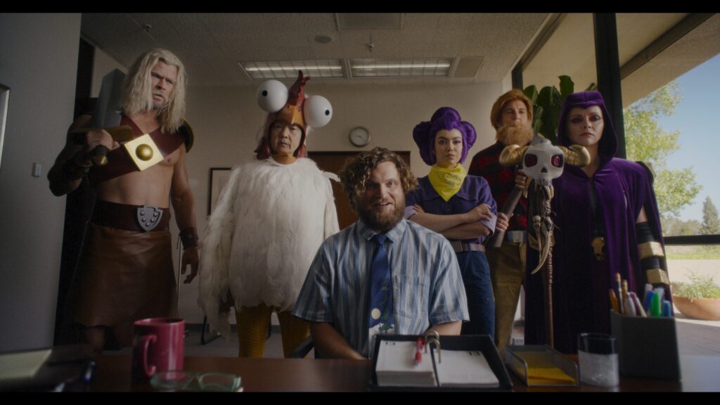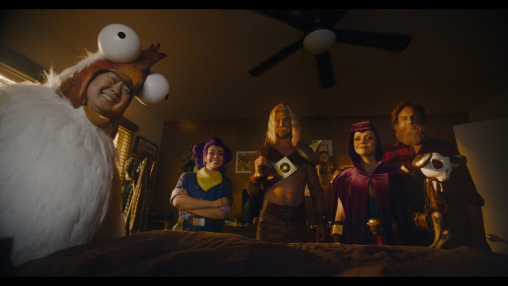 The Hollywood gang, while quipping about Ricci’s skeleton-summoning staff, encounter another player’s squad whose characters are played by Internet sensations including TikTok superstar Bella Poarch as Witch, real-life woodcutter Thoren Bradley as Greg, lip-syncing legend Gabriela Moura as Shelly and YouTube extraordinaire ZHC as Chicken.