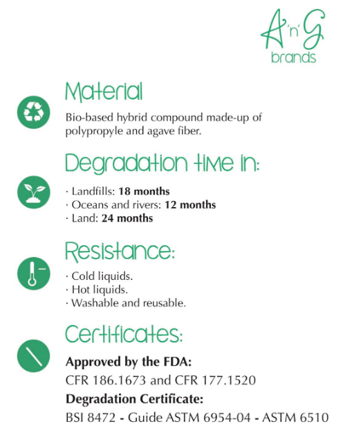 Agave straws are 100% NATURAL – Mexican Agave drinking straws are made from natural Agave (Mexican Tequila Plant), making them one of the most sustainable, environmentally-friendly drinking straws available today. Given that they’re disposable, it’s great to know they are fully biodegradable. They are food safe – made from nothing other than Agave Fiber