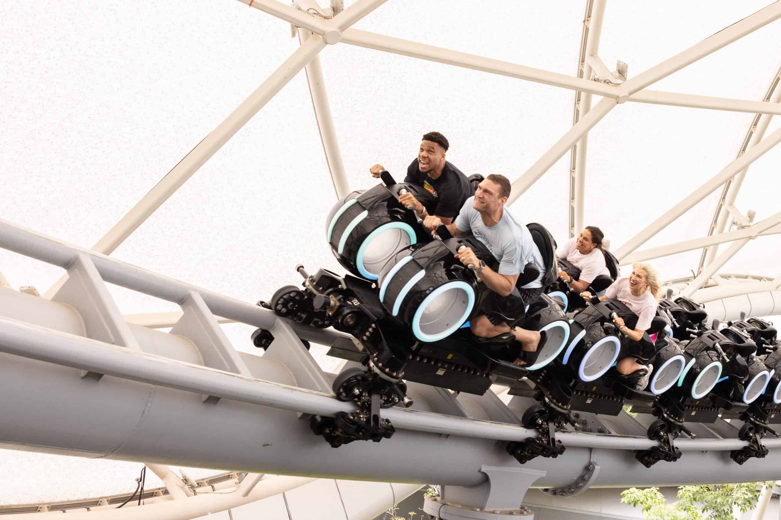 NBA Stars Giannis Antetokounmpo and Brook Lopez Ride TRON Lightcycle / Run at Walt Disney World Resort