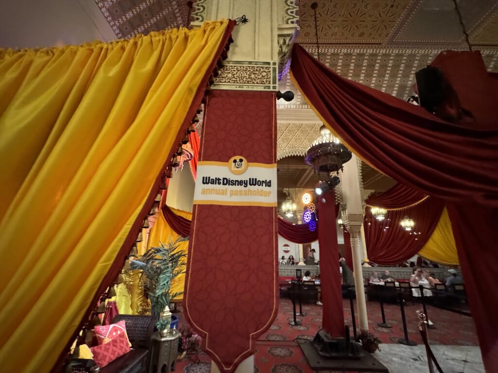 The 2024 lounge was located in EPCOT’s Restaurant Marrakesh, featuring complimentary snacks, water, charging, and Passholder buttons. The 2025 lounge location is currently unknown, but similar offerings are expected.