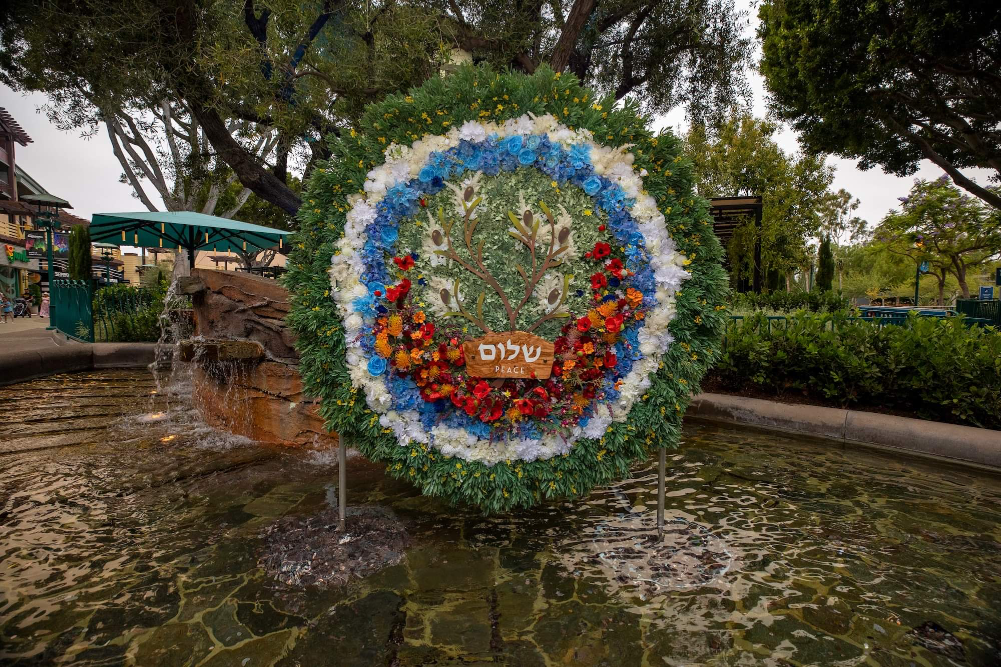 The SHALOM silleta has plants that are indigenous to Israel, like poppies, cyclamen, and narcissus. An olive tree on the silleta has six olives, representing the six pillars of the SHALOM BERG’s mission – synergy, history, allyship, legacy, obligation, and meaning.