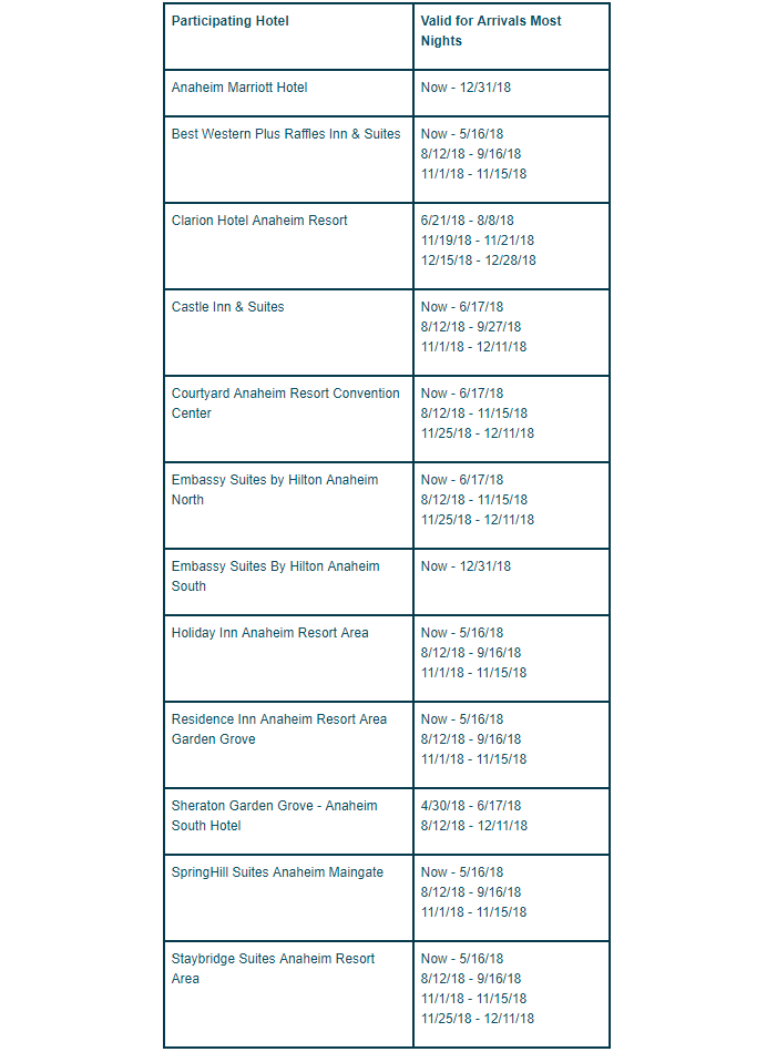- To take advantage of this 4th night free offer, you must book a package with a minimum stay of 3 nights at a participating Good Neighbor Hotel that includes a minimum 3-day (1-Park per day) Disneyland Resort theme park ticket per person.