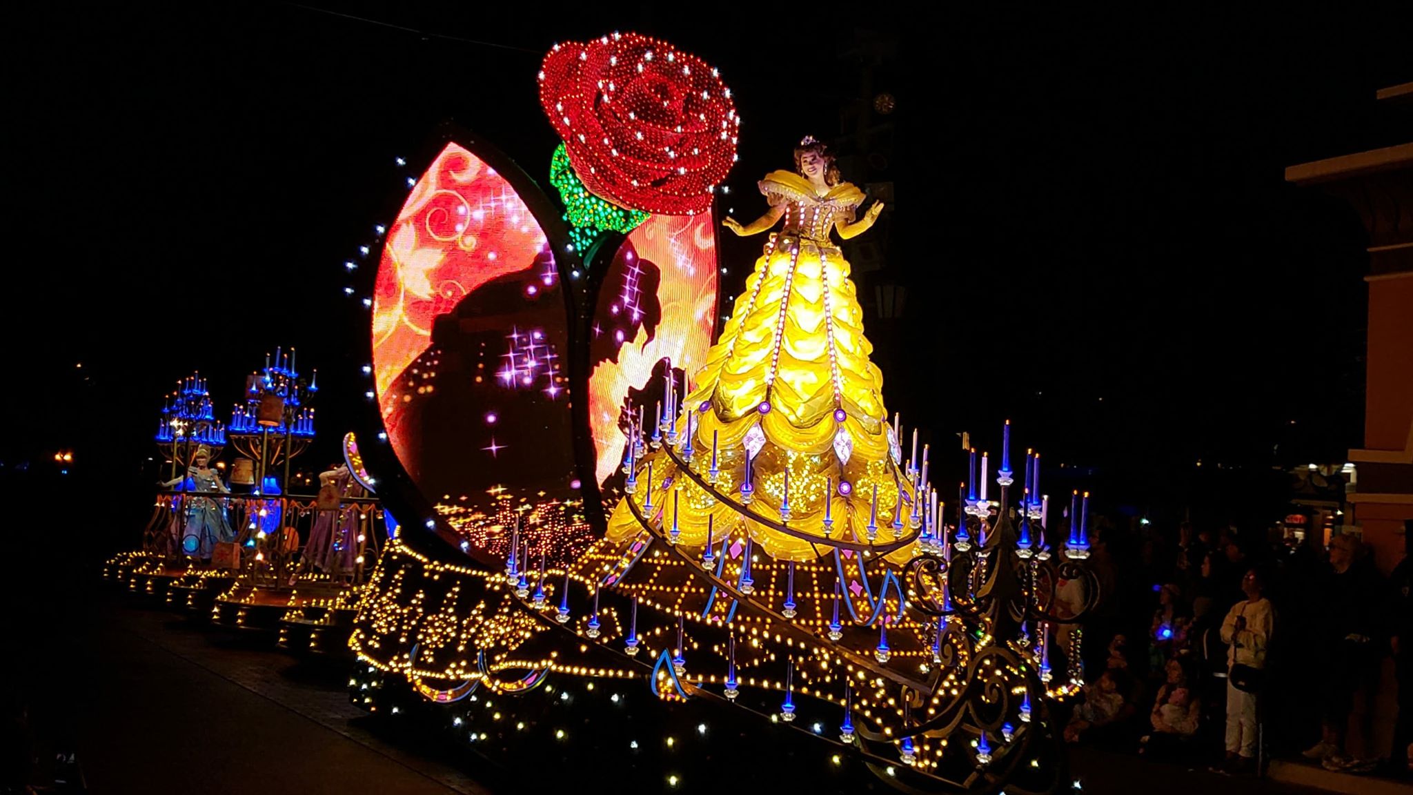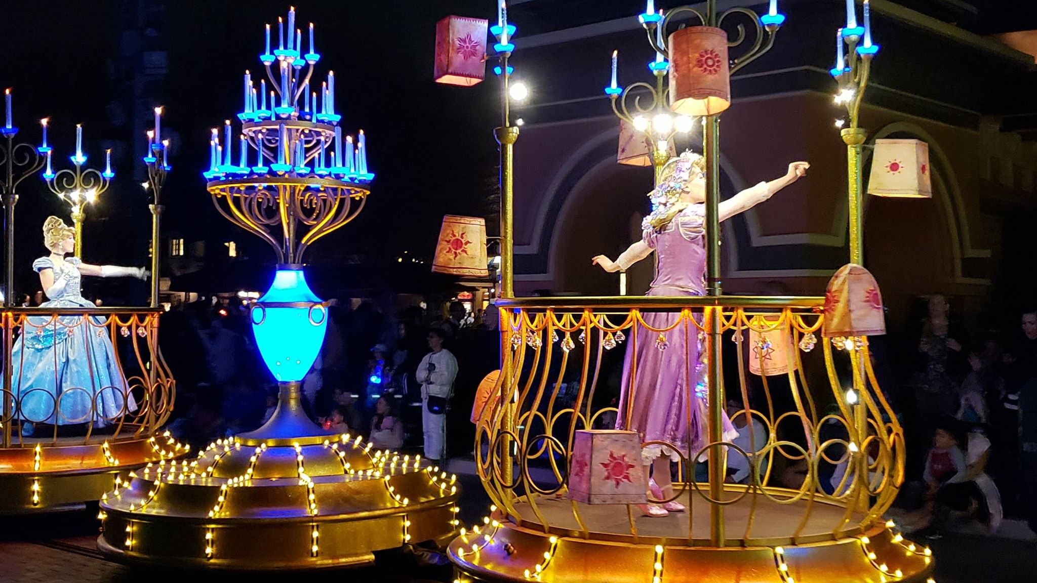 Cinderella and Rapunzel wave to the crowd swaying to the music playing.