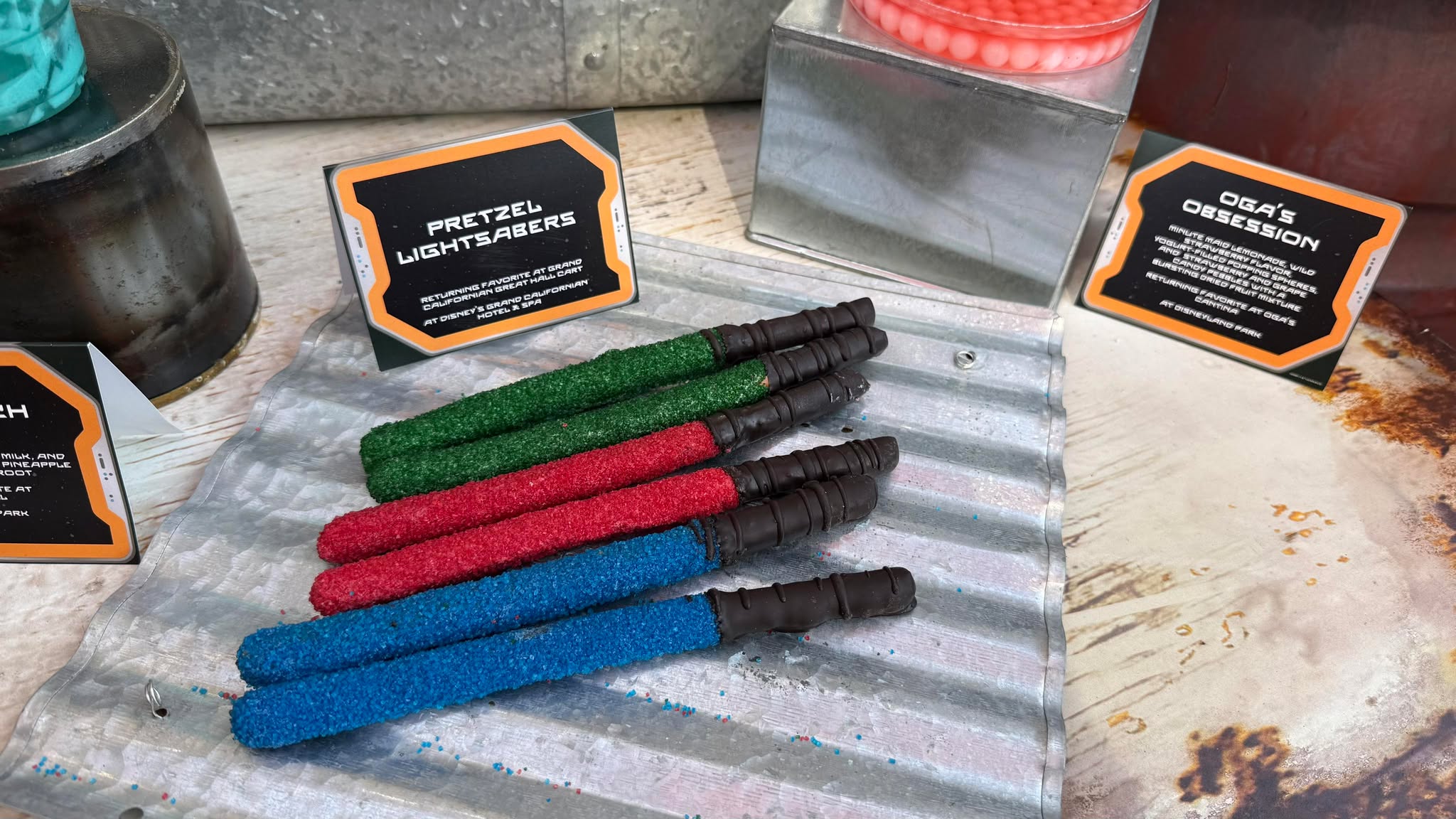 - Oga’s Obsession: Minute Maid lemonade, wild strawberry flavor, yogurt-filled popping spheres, strawberry & grape candy pebbles with a bursting dried fruit mixture. Available at Oga’s Cantina.