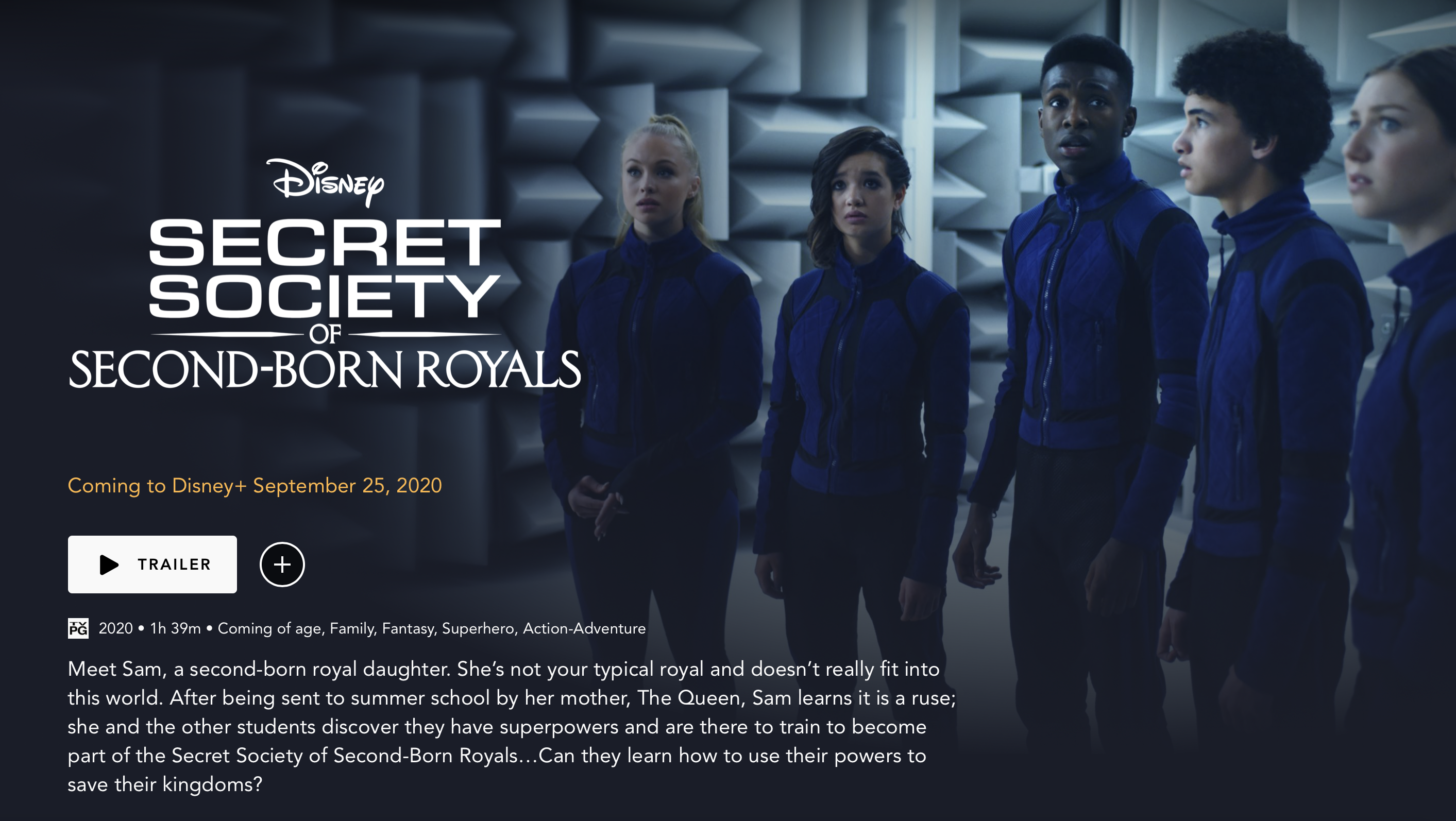 Secret Society of Second-Born Royals Now Streaming on Disney+. Disney+ Subscribers! We are proud to present you with the royal invitation to the premiere of the new Disney+ Original Movie, Secret Society of Second-Born Royals, now streaming on Disney+!