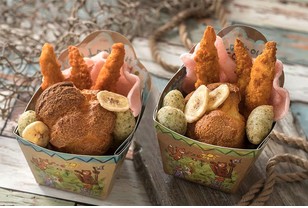 The menu at Lookout Cookout features a delightful Lost Kids’ Snack Box, packed with chicken tenders, seaweed fritters, banana chips, and shrimp chips. Don’t miss the magical “Pixie Dust Soda (Kiwi),” a fizzy drink with a star that dissolves into a shimmering silver effect, just like real pixie dust!