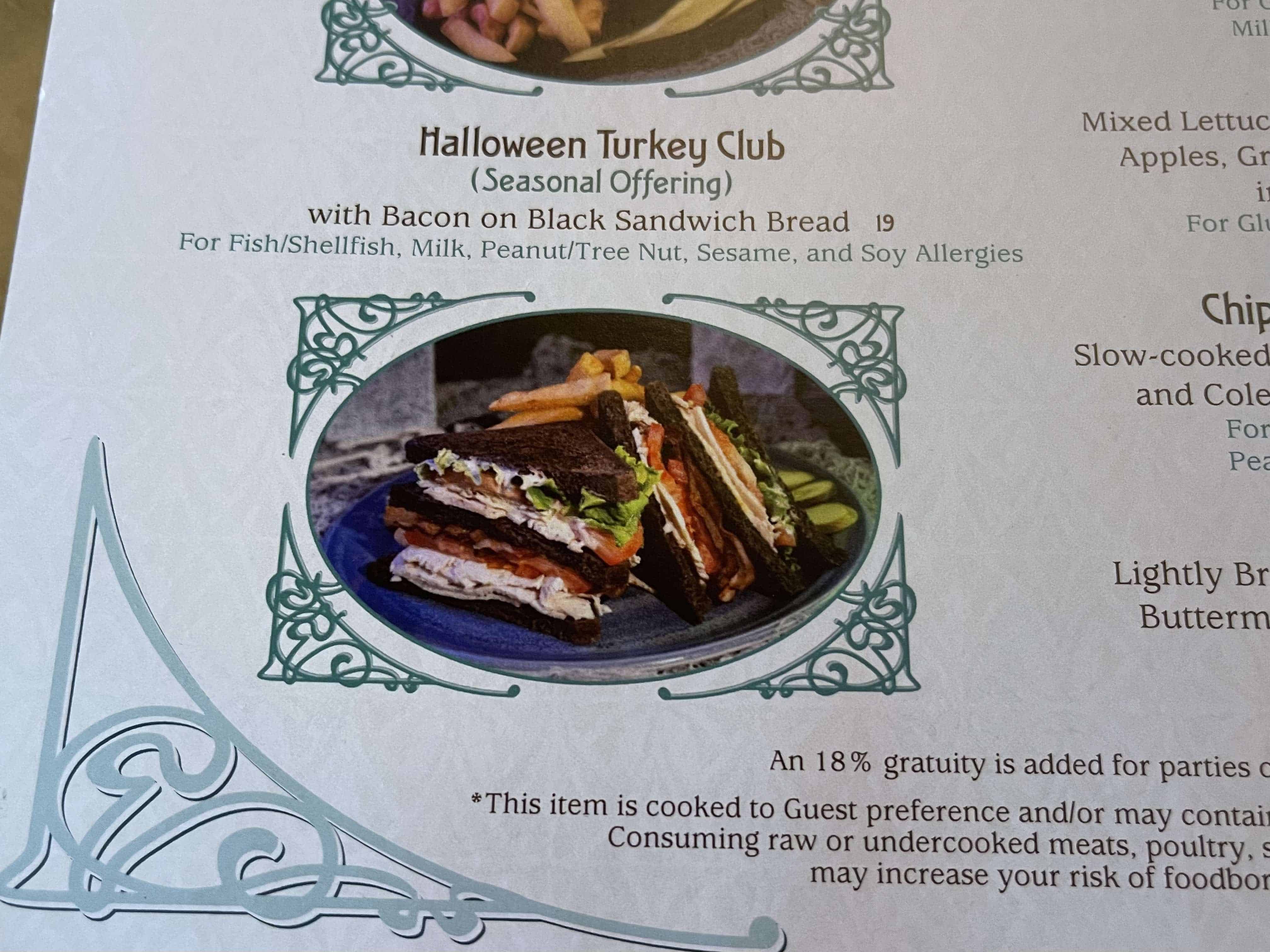 For those craving a lighter bite, the Halloween Turkey Club offers a delicious combination of turkey and bacon on black sandwich bread for $19.00. Both the Turkey Club and Burger are available in allergy-friendly versions, allowing more guests to join in on the Halloween feast.