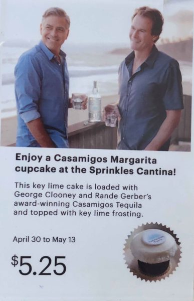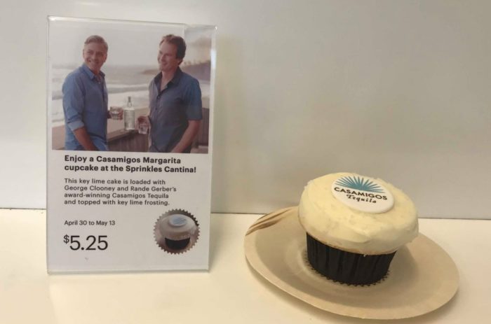 We visited the Sprinkles location at Disney Springs yesterday and found an awesome tequila filled surprise! They have now created a key lime cupcake loaded with George Clooney and Rande Gerber’s award-winning Casamigos Tequila. As if that wasn’t enough they have topped it with yummy key lime frosting! There is even an edible sugar disc on top displaying the Casamigos Tequila logo.