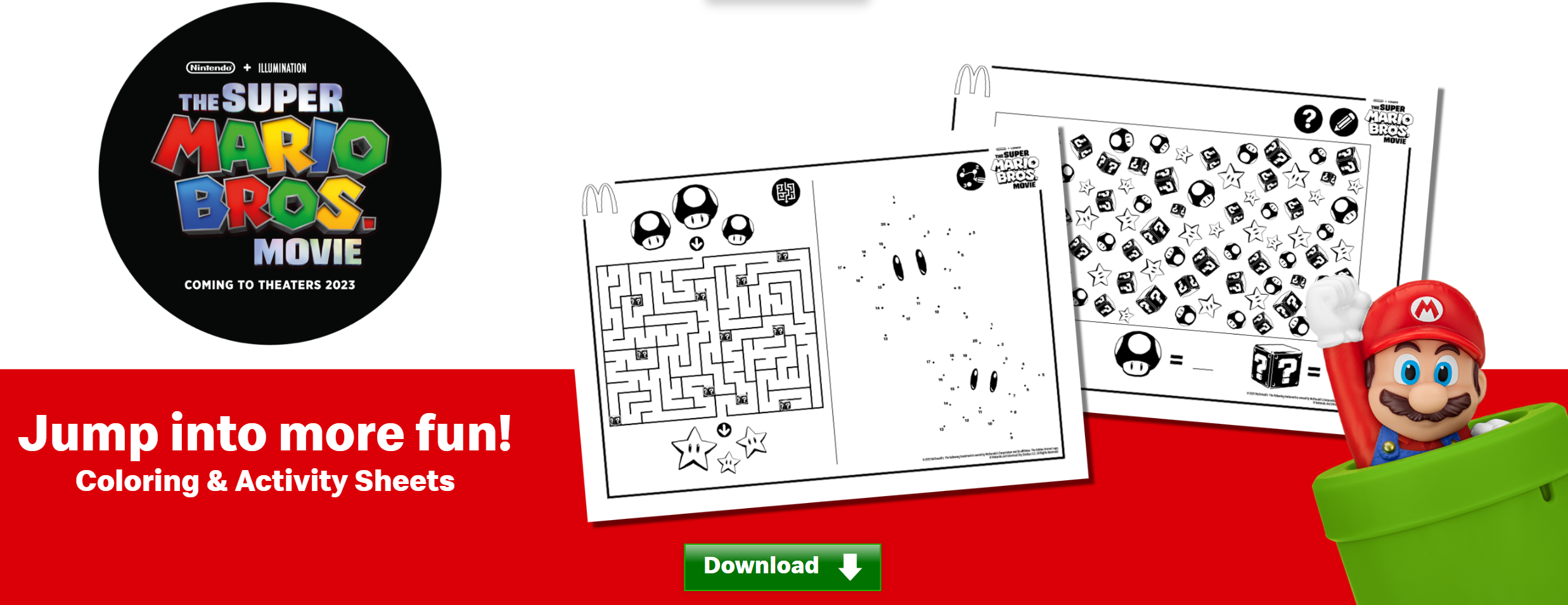 Also available on HappyMeal.com are fun Super Mario Bros. Coloring Pages and Activity Sheets.