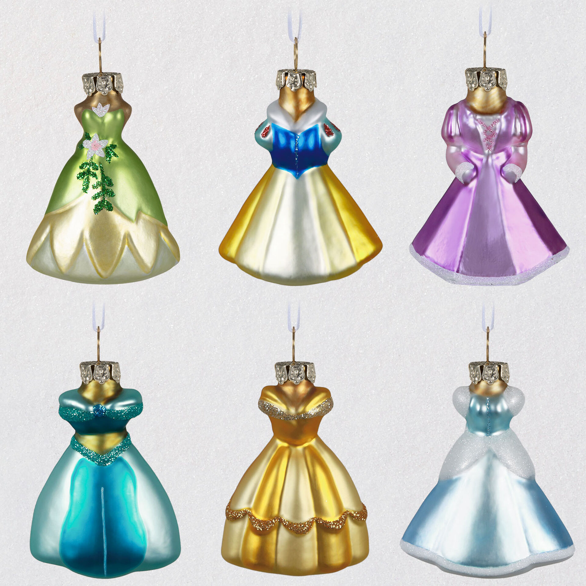 Home The 2021 Disney Hallmark Keepsake Collection Has Been Revealed! Disney-Princess-Dresses-Fit-for-a-Princess-Glass-Ornament-Set_1999QSB6132_01