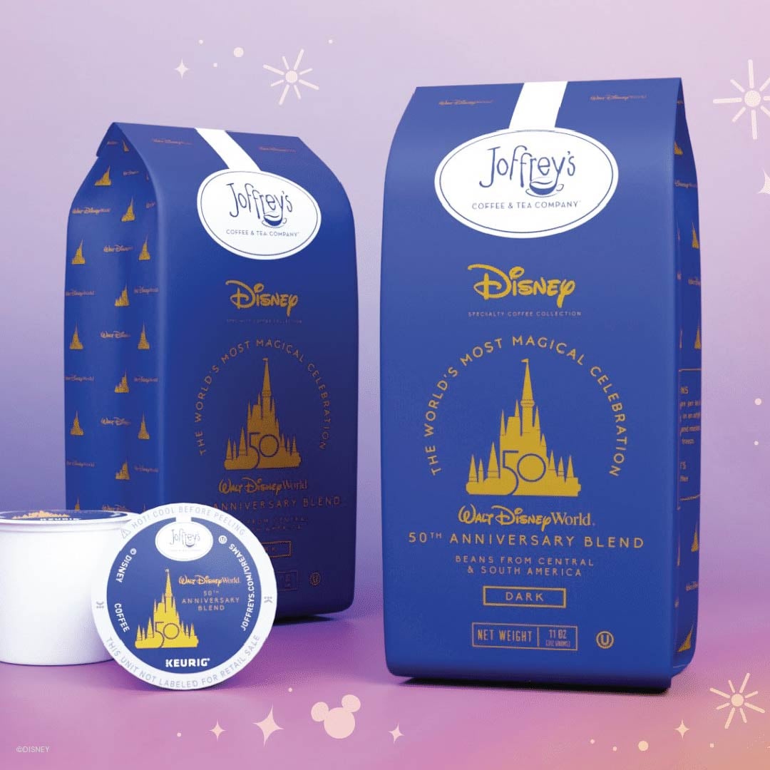 A magical blend to add some sparkle to your cup, the Walt Disney World 50th Anniversary Blend is a dark blend of 100% Arabica beans from Central and South America featuring notes of blueberry, black cherry and a subtle hint of lemon. This blend is available for purchase at select Walt Disney World Resort retail locations, Joffreys.com and Amazon.com.