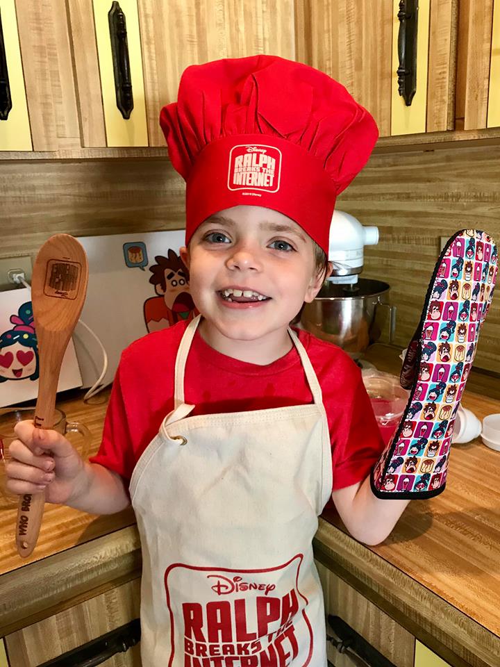 After we got into our Ralph Breaks the Internet Chef hat and apron, it was time to set up for a family fun day of sweet treats, and hands on baking and cooking, with the movie as our finale. We always like to get all of our kitchen tools set up before we start, and decided to put up pics of Ralph and Vanellope for inspiration.